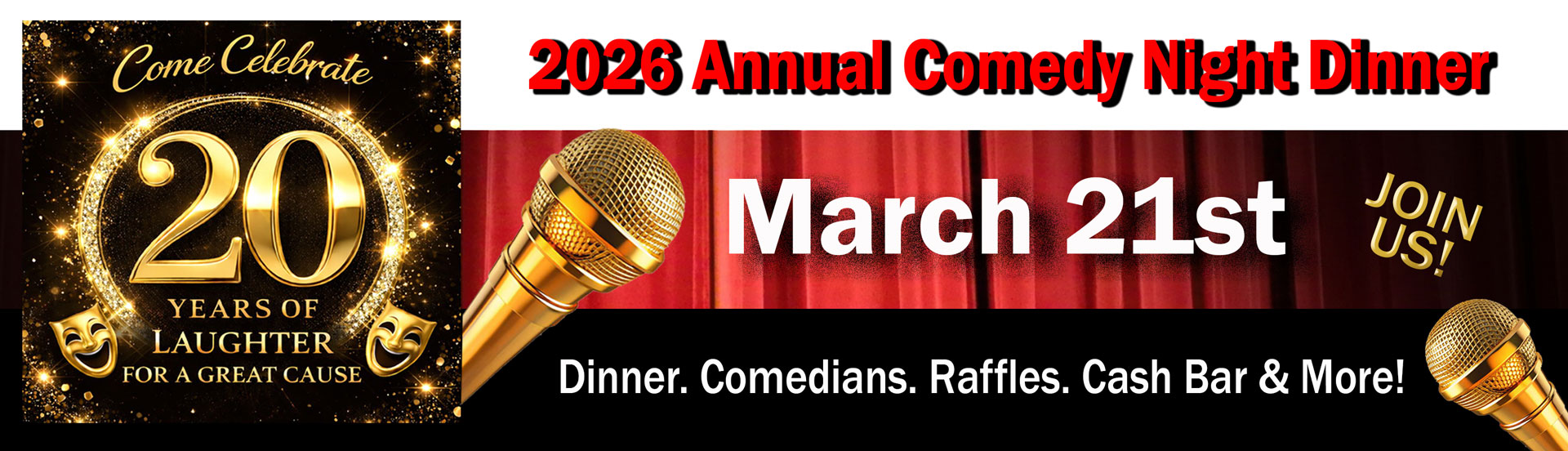 Join us as we mark two decades of community, generosity, and side-splitting laughter – all in support of a great cause. This year’s milestone event promises to be bigger and better than ever.